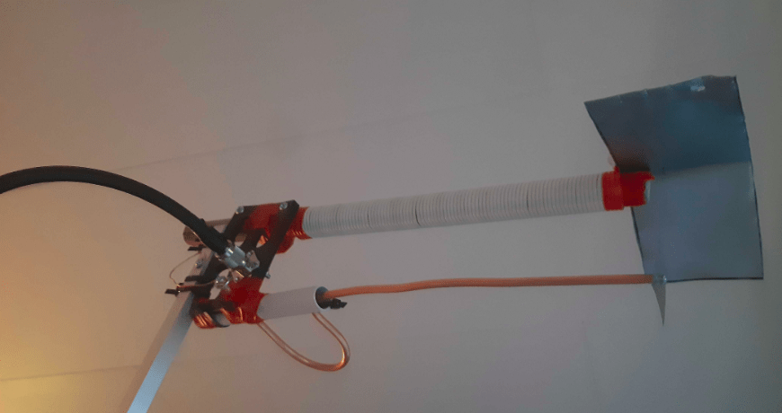 I had some spare copper pipe from a DIY car brake kit, and the metal plates was some scrap metal I had laying around. With some zip ties, electrical tape and a stub of PVC pipe for support, I ended up with this abomination: