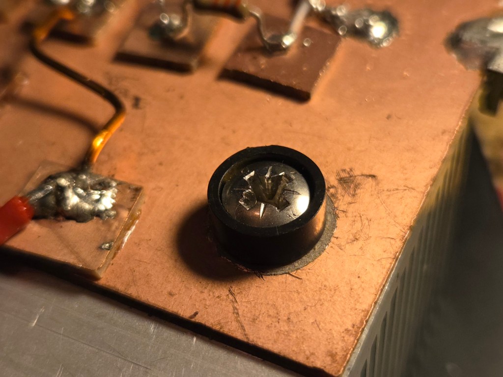 I’m sorry, what was that? Did you say you’re concerned the PCB mounting screws will short drain to ground? Don’t worry, I gotcha fam. The copper is removed under and around the screws, and insulated them with “upside-down plastic caps.”
